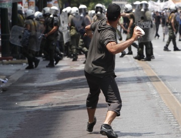 اشتبك عشرات الشبان الملثمين مع رجال الشرطة في اليونان، واضطربت حركة النقل والمرافق العامة بسبب الاضراب العام الذي دعت اليه النقابتان الرئيسيتان في البلاد احتجاجاً على اصلاح نظام التقاعد، وهو الاجراء الرئيسي الذي اتخذته الحكومة الاشتراكية لتصحيح الاوضاع المالية في البلاد.