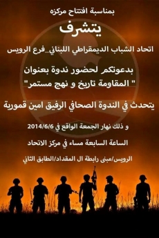 لذا ندعو للمشاركة بهذا الاعتصام وفاءا لدماء الشهداء وضد تثبيت وجود العدو كامر واقع، وتأكيدا على ان العدو ما زال عدوا وسيبقى، لا لفئة معينة من الشعب بل ضد الانسان في لبنان وفي كافة الدول العربية وشعوب العالم على امل تفعيل ورفع الموقف المقاوم والرافض للتطبيع وتشريع العمالة. كما نؤكد أننا سنكون إلى جانب كافة التحركات الرافضة للتطبيع مع العدو والداعمة لمقاطعته ثقافيا اقتصاديا إعلاميا "ورعويا".