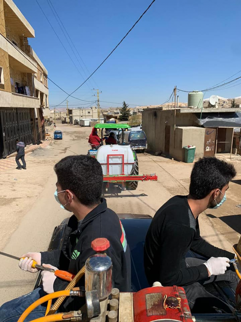 قام اتحاد الشباب الديمقراطي فرع _ عرسال "قسم الصمود الشعبي" بالتعاون مع جمعية المونة ب رشّ المعقمات في شوارع البلدة ومخيمات النازحين السوريين#الصمود_الشعبي