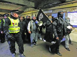 وتظاهر في وسط العاصمة البريطانية امس، حوالى 50 متشدداً، ضد «ممارسات الجيش البريطاني في افغانستان والعراق». وينتمي المتظاهرون الذين ارتدى معظمهم اقنعة، الى منظمة «مسلمون ضد الصليبيين».