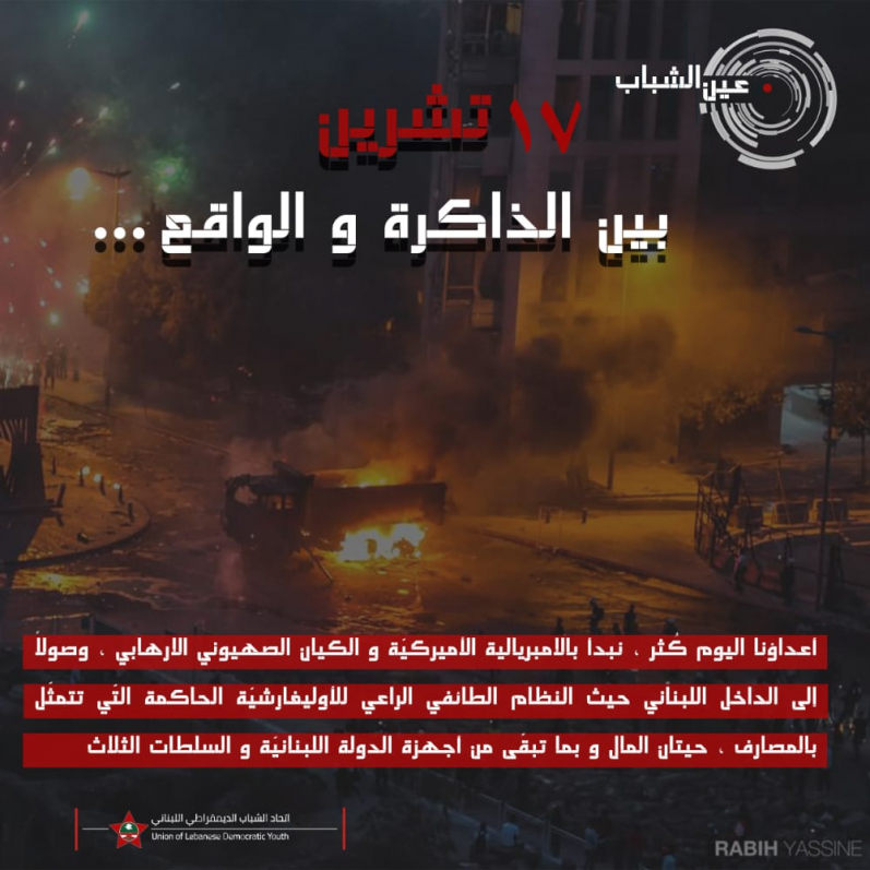 و اليوم تأتي الذكرى و يأتي تشرين محمّلاً بمشاعر تعصف غضباً و ألماً كبيرين في صدورنا ، ليأكدّ أنّه لا حلّ إلا بتغيير هذه المنظومة و تغيير النماذج الإقتصاديّة و السياسيّة المعتمدة منذ سنين .