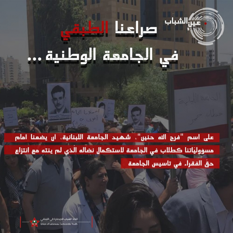إن كان لا بدّ من رباطٍ عاطفي يربطنا بالجامعة اللبنانيّة فهو يعود إلى عام ١٩٥١ عندما خرج طلاب الطبقة العاملة والفقيرة مطالبين بتأسيس جامعةٍ وطنيّةٍ لهم، فمن منّا لا يملك عواطف خاصة تجاه صرح تعليمي تأسّس بنضالات الطلاب ودماء الشهداء ضدّ البورجوازيّة اللبنانيّة آنذاك؟ إلّا أنّ العاطفة هذه لا تغيّر شيئًا، على اسم "فرج الله حنين"، شهيد الجامعة اللبنانية، أن يضعنا أمام مسؤوليّاتنا كطلاب في الجامعة لاستكمال نضاله الّذي لم ينتهِ مع انتزاع حقّ الفقراء في تأسيس الجامعة.